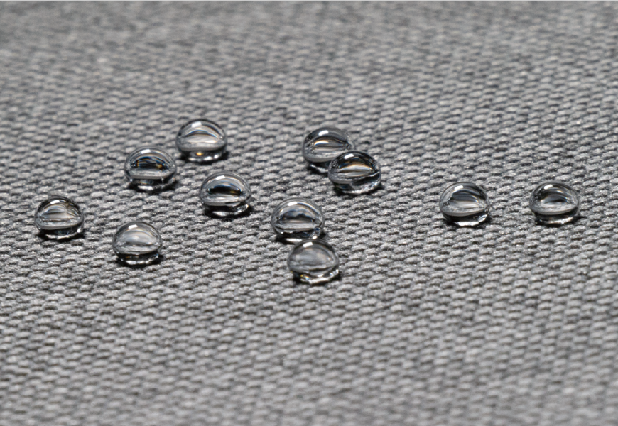 ファブリック表面に撥水被膜を形成。汗や飲み物・食べこぼし等の汚れが布シート繊維に浸透するのを防ぎ、美しく快適なコンディションが長期間持続します。
