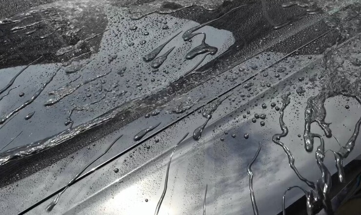 水が塗装面にまとまりながら流れ落ちる。洗車時の汚れ落ちが良く、撥水よりもシミになりづらいものの、水ハジキの効果は下がる